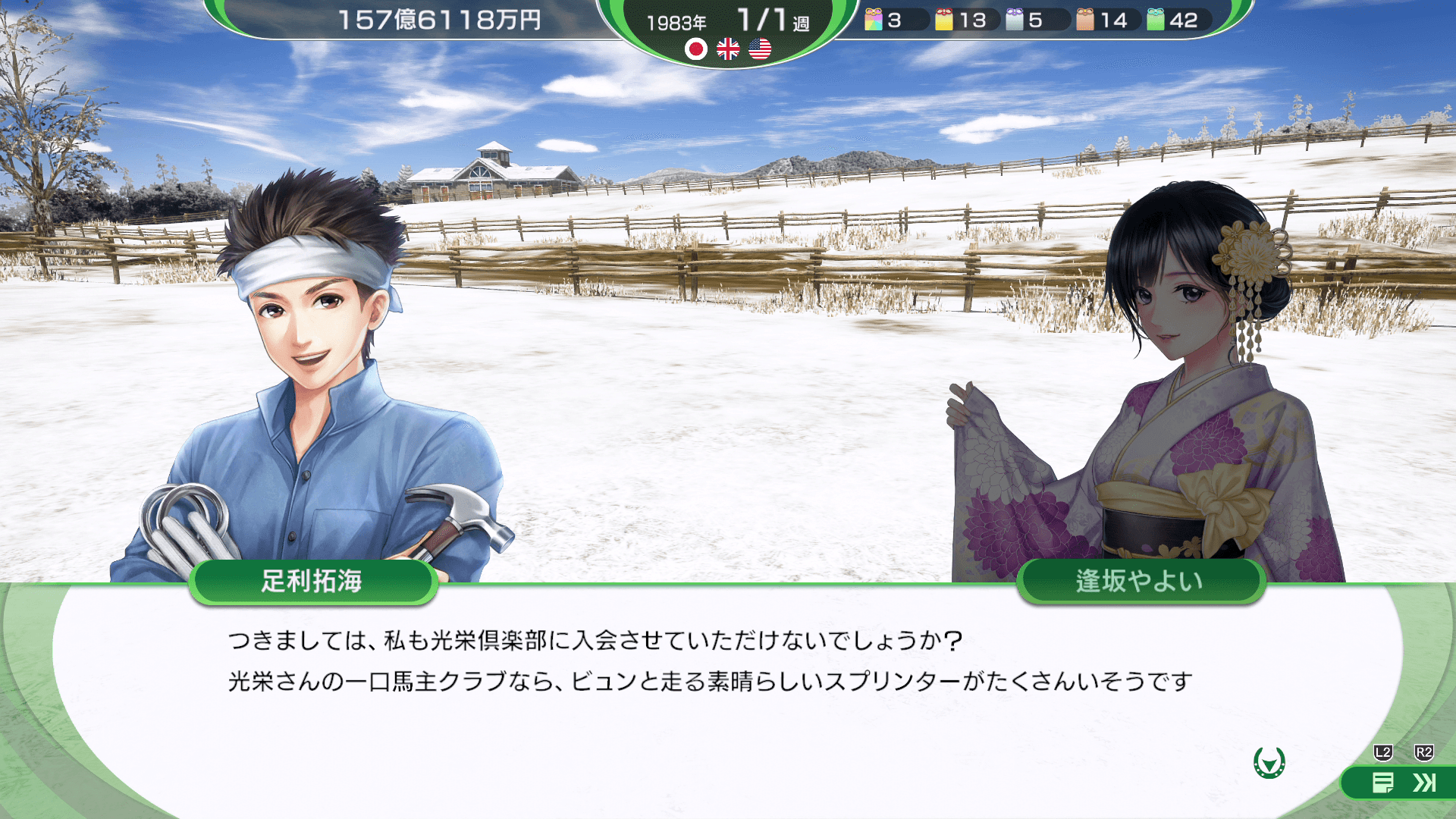 特定の条件を満たすと、クラブを設立できるようになります。牧場と並行してクラブを経営し、有望な馬を集めてナンバーワンクラブを目指しましょう。