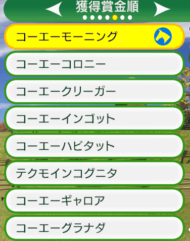 | 獲得賞金順 | 所有競走馬を本年の獲得賞金順に確認できる。 |