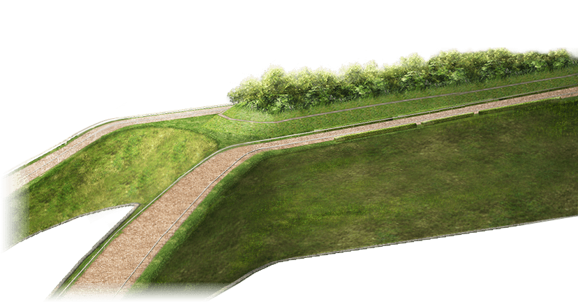放牧時、競走馬の疲労が回復しやすい。競走馬の故障期間が短くなることがある。 | 建設 | 拡張 | 再拡張 | |