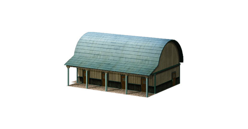 幼駒の繋養数が増えても育成効果が下がらない。施設なし(9頭まで)→初期(14頭まで)→拡張(19頭まで)→再拡張(制限なし)。 | 建設 | 拡張 | 再拡張 | |