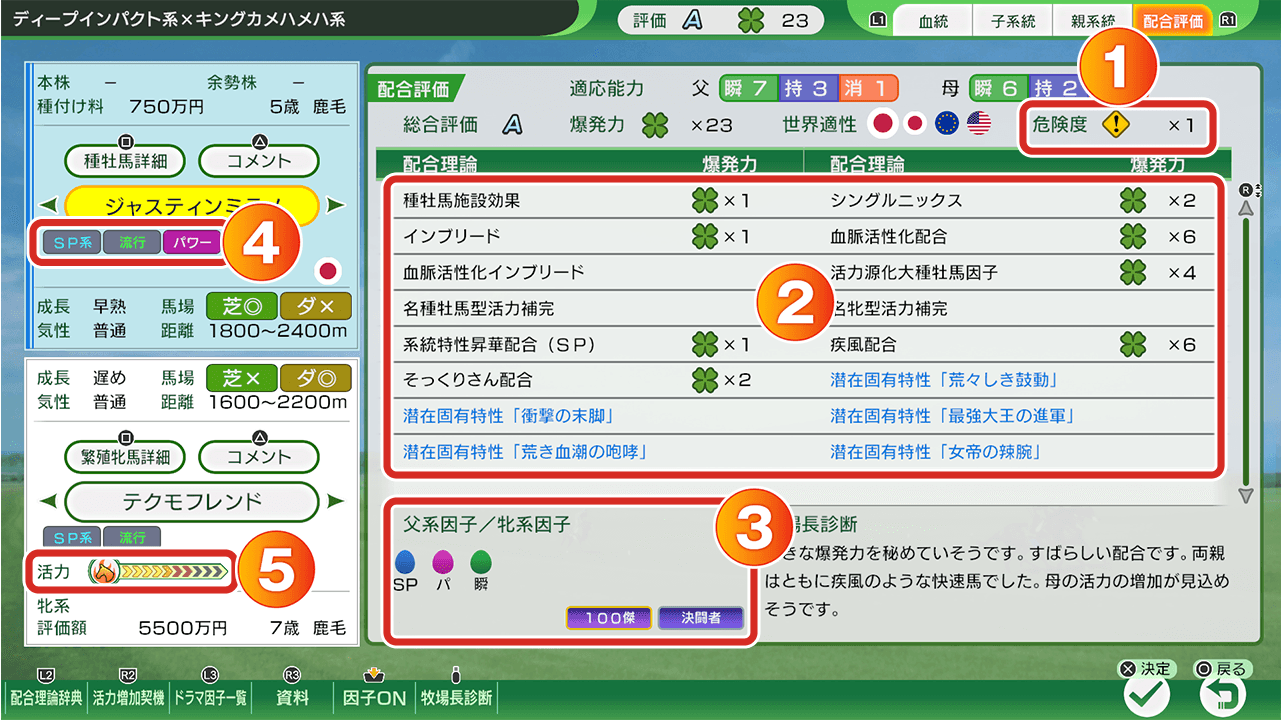 )が現れた場合、効力が高くなります。ただし、因子が活性化しても、その馬に因子自体が受け継がれたわけではありません。