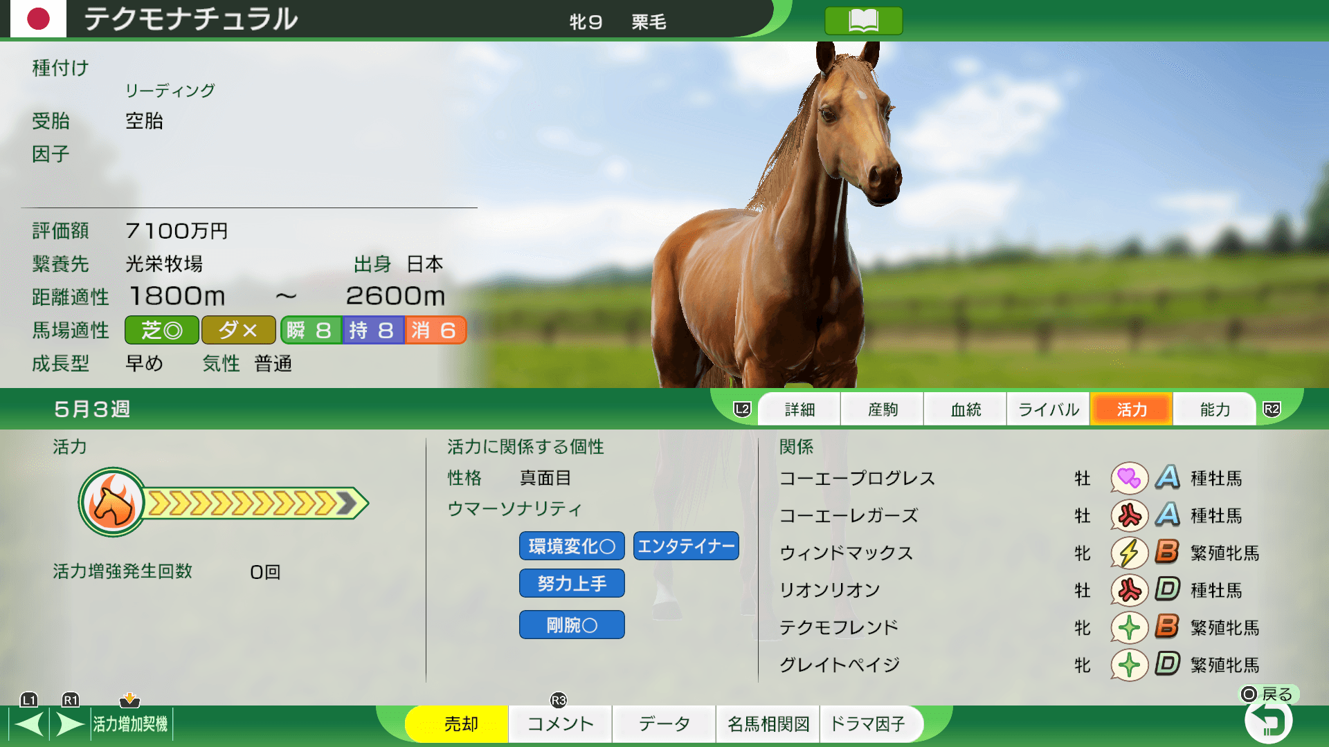| 牧場長 | 馬のメンタル部分と健康が基準。 |