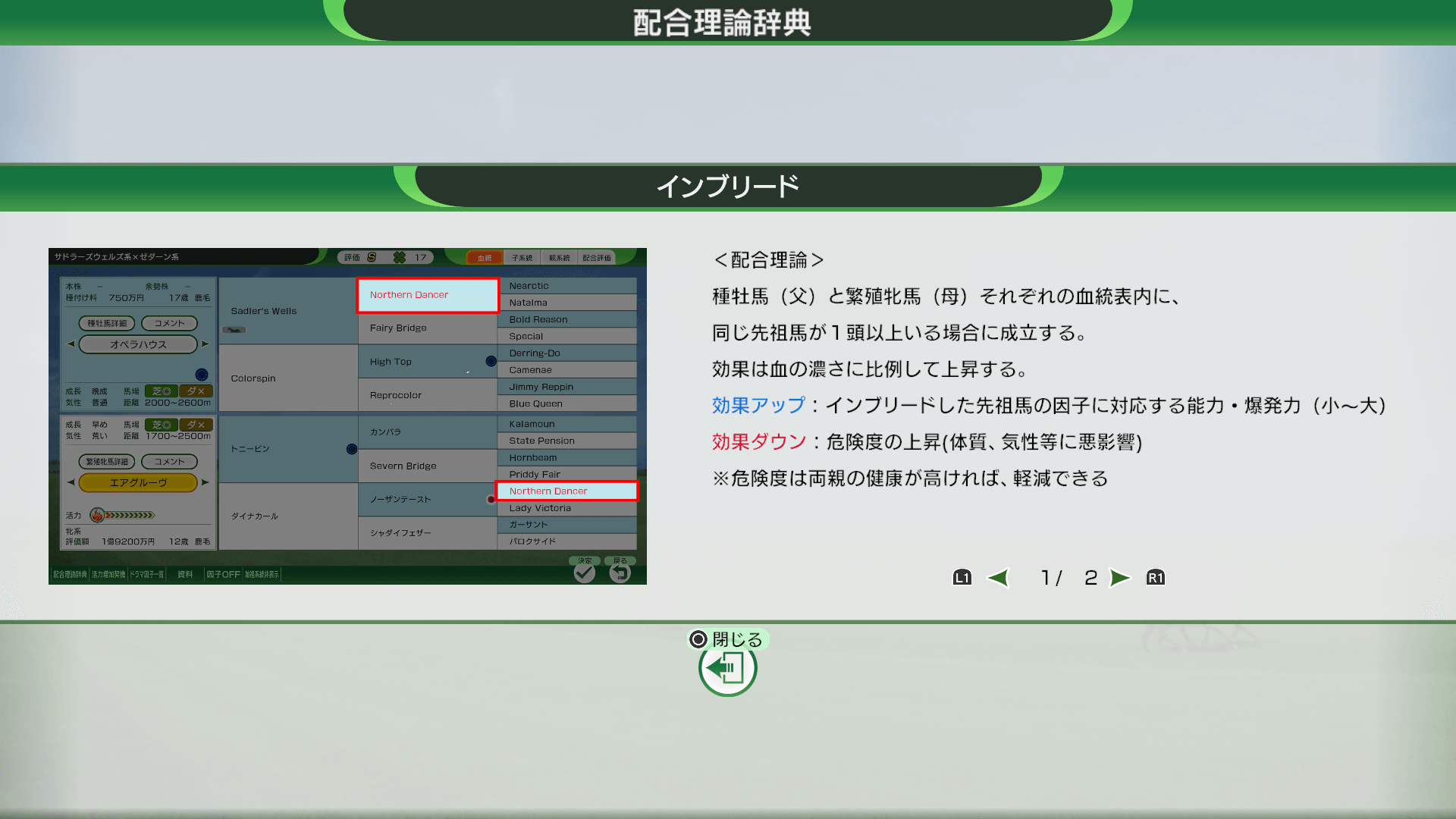 競馬用語辞典を見ます。ゲーム中の配合理論なども見られます。