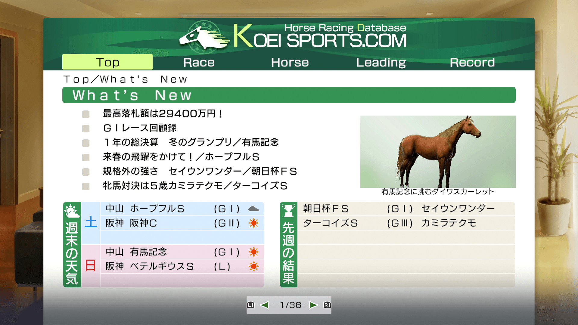 今週のレースの予想や、有力馬の情報などを見ます。