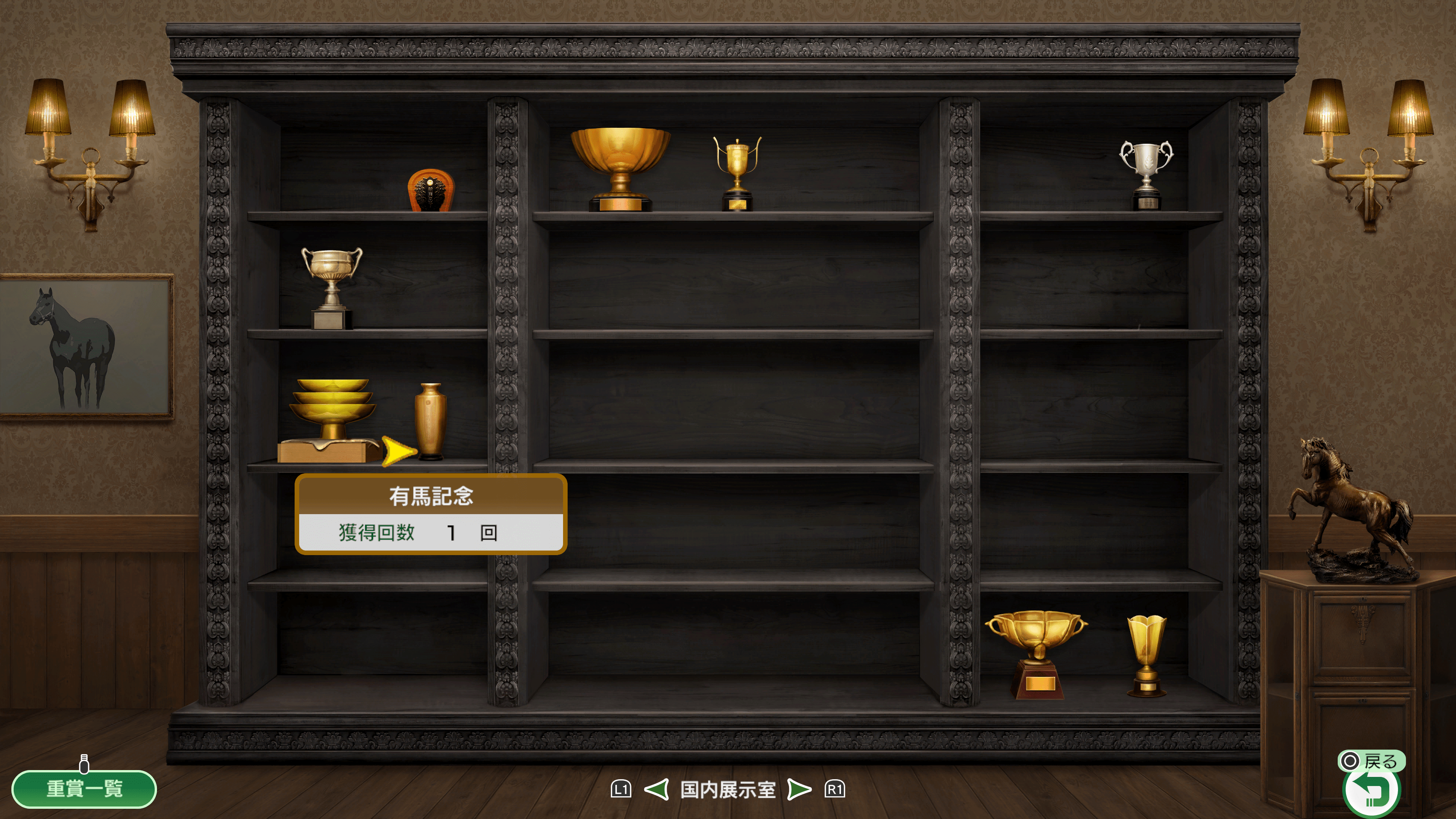 手に入れた優勝カップ、賞状、重賞一覧を見ます。