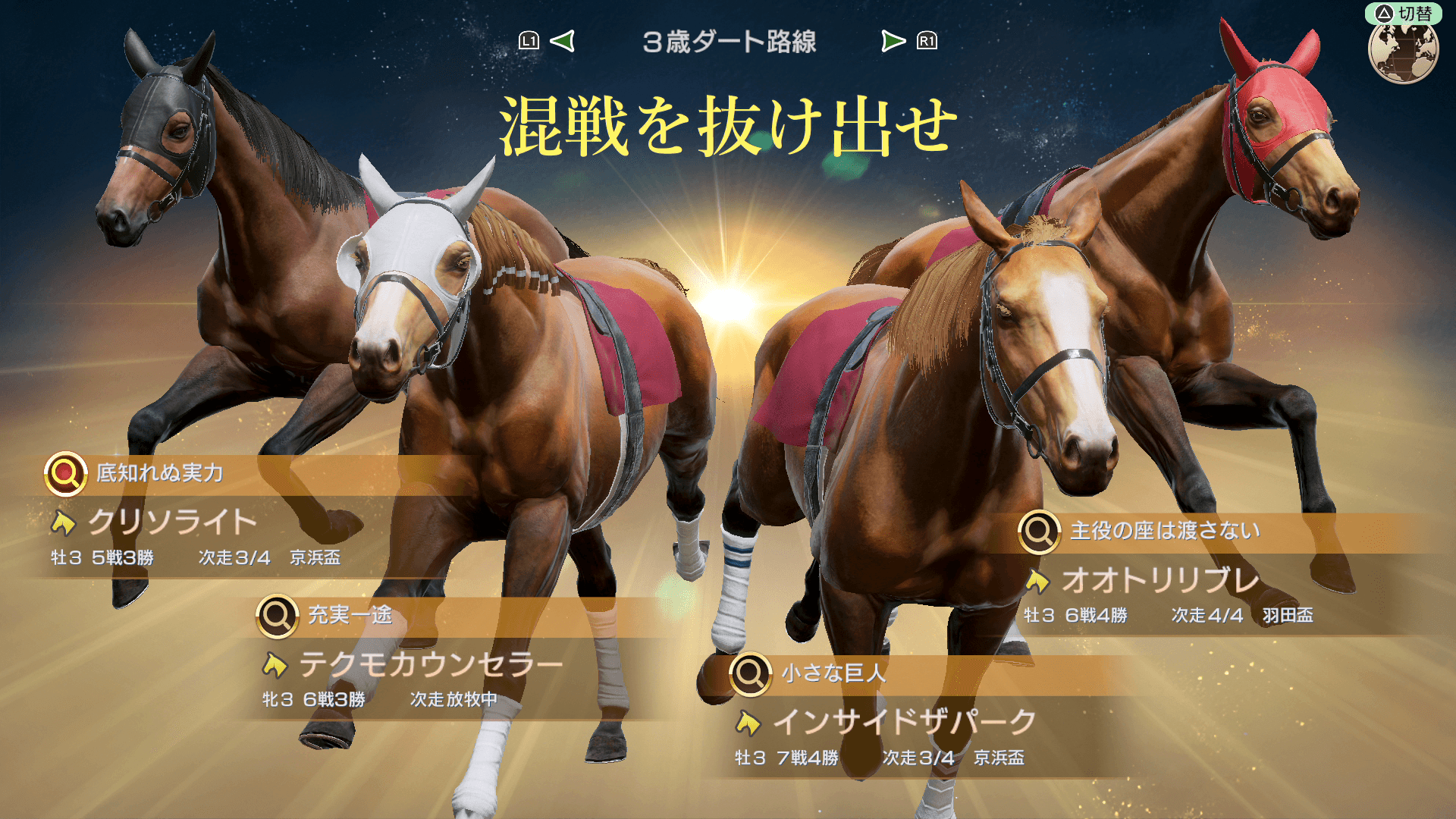 世界の中長距離、短距離、ダートの各路線における現時点の有力馬を見ます。