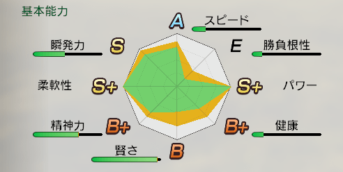 | パワー | 高いほど、重馬場・坂のある競馬場で能力を発揮する。低いほど重馬場・坂のある競馬場を苦手とする。 |