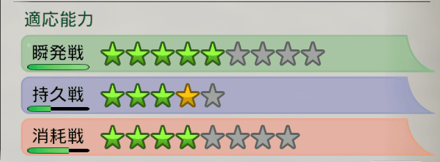 | 持久戦 | 中盤からずっとペースが上がっていくレースに適応しやすい。 |
