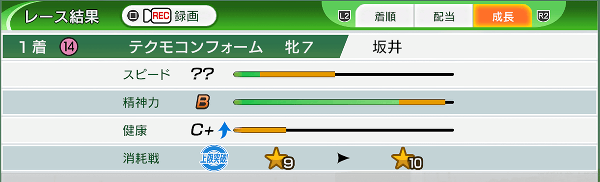 上限突破は、「究極の○○戦」「超○○戦」のようなレース傾向が強いレースでの勝利で発生することがあります。史実調教でも低確率で上限突破が発生します。