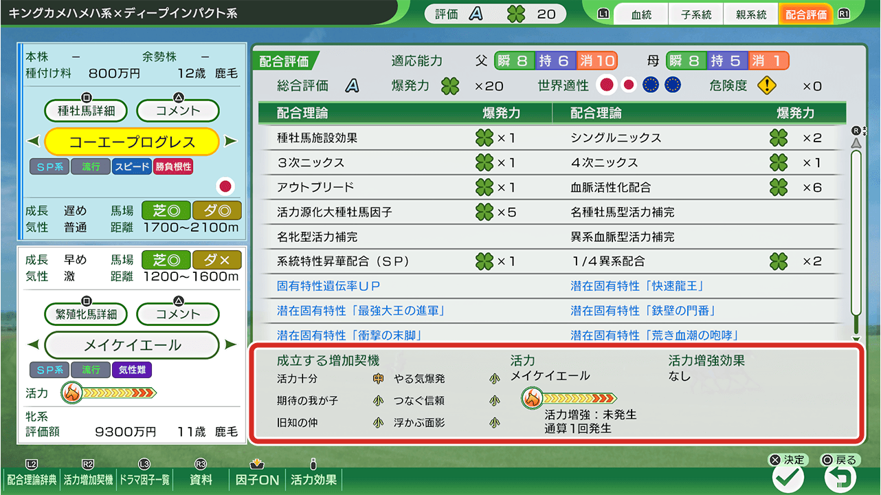 種付けで成立する活力増加契機は「活力効果」に表示されるから、注目してみてね