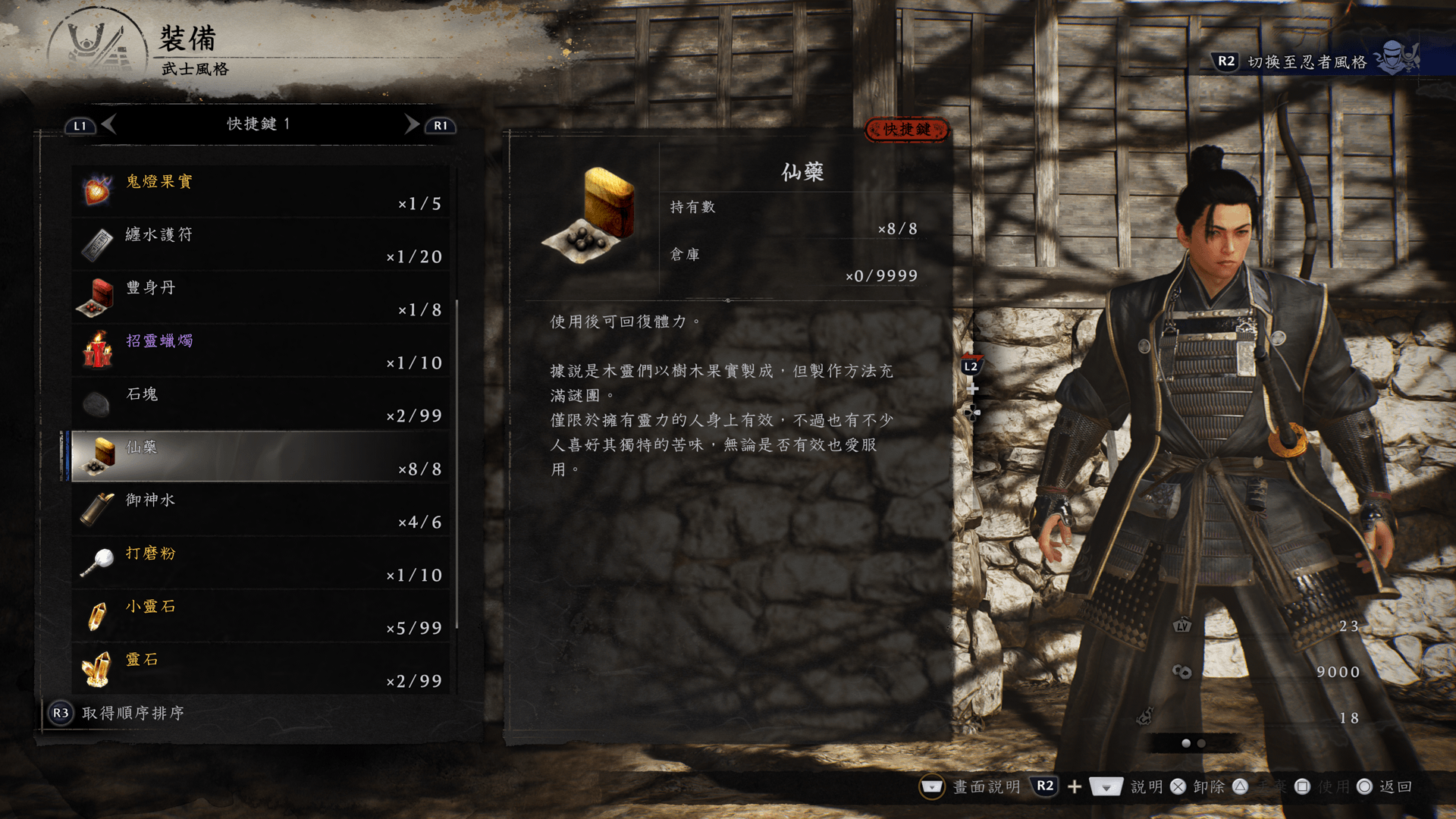 武士風格和忍者風格可各自裝備不同的武器、防具、配件和守護靈。
