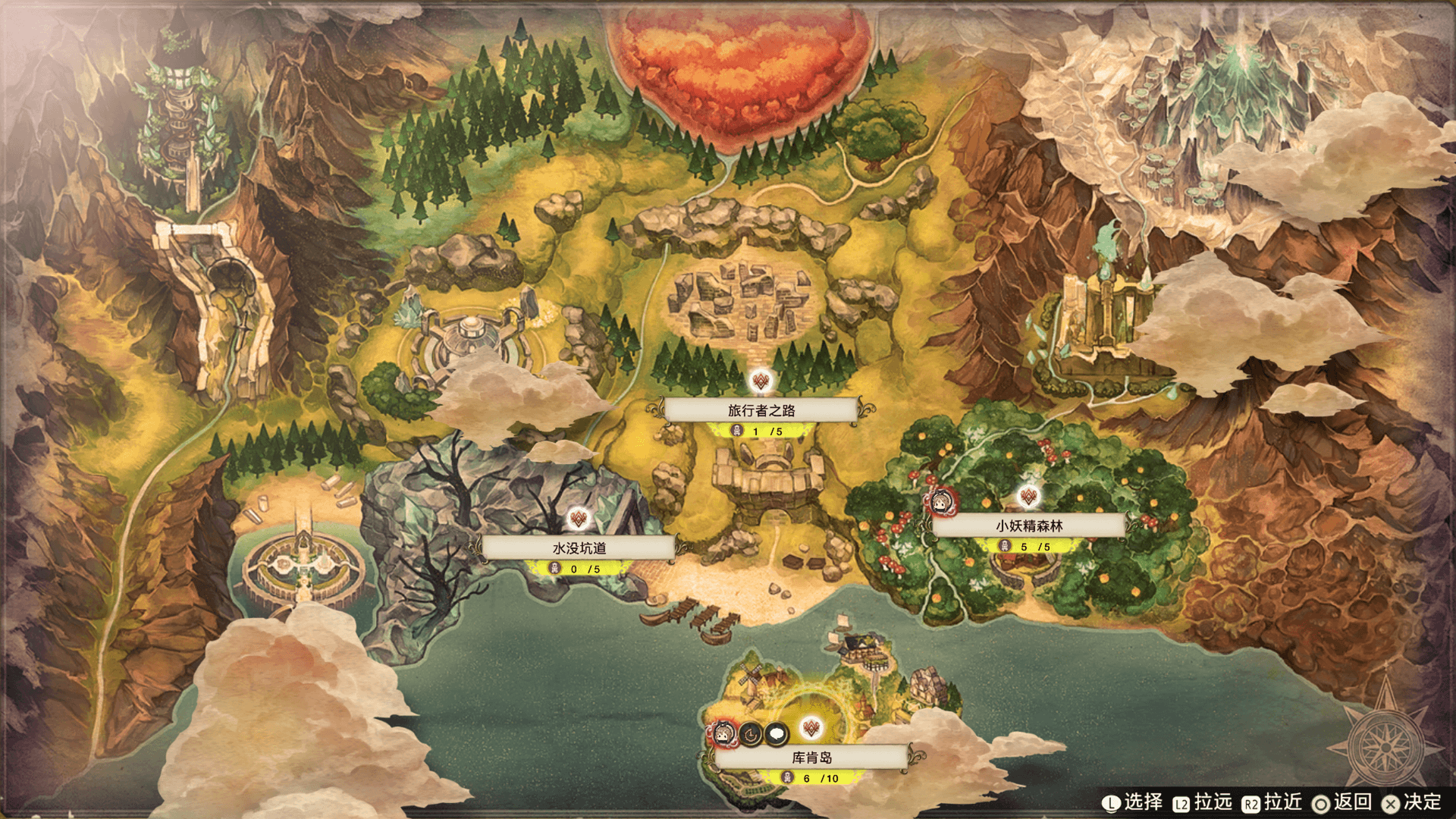 在记忆地图上会显示曾经冒险过的场所的地图。另外,还可以以快捷方式移动到各个区域。 找完原野上所有地界标之后,会附加探险记录。根据记录角色的不同,探险记录的内容也会随之变动。