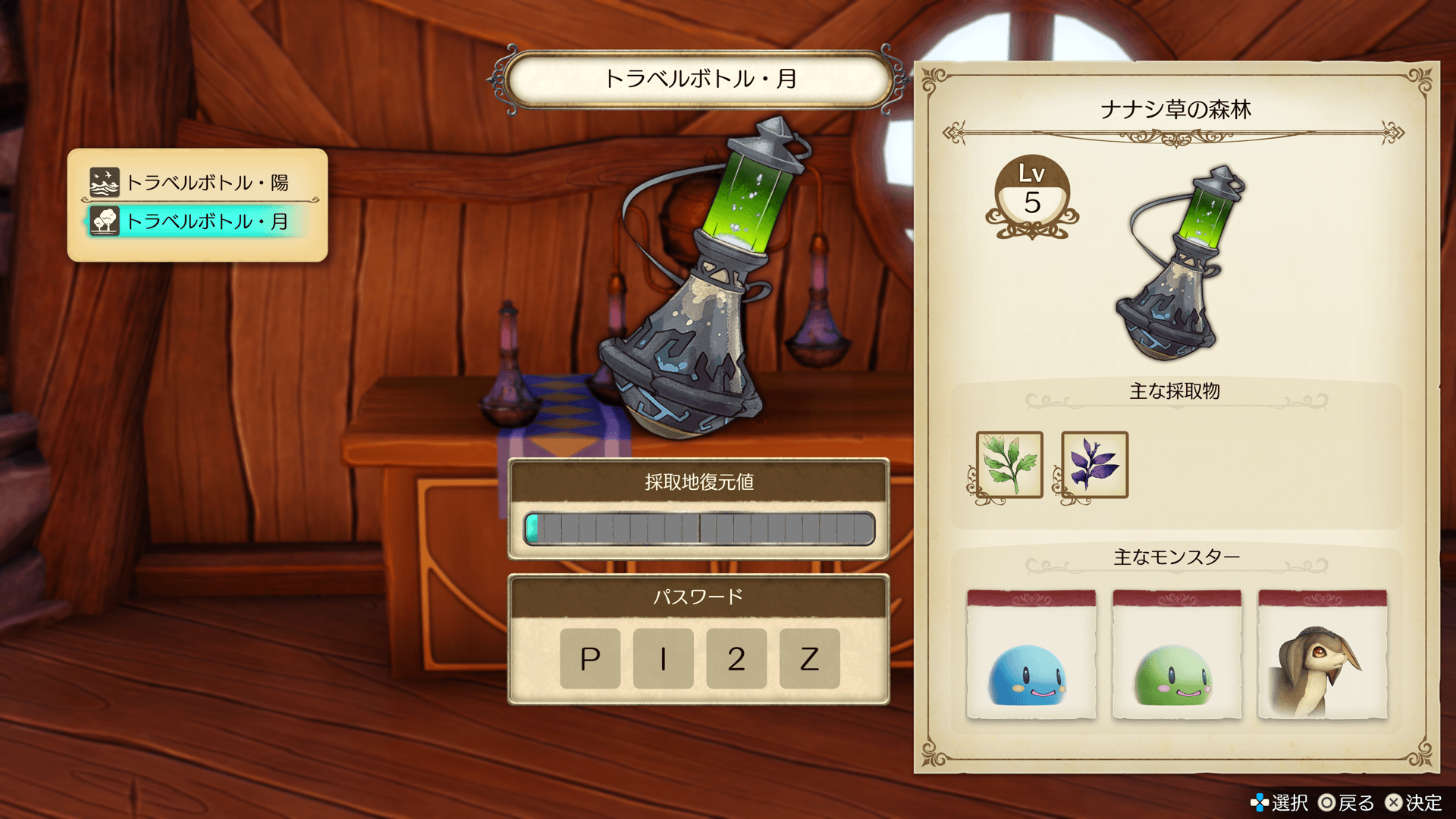 ボトルを集めるほど、高レベルの採取地を調合できます。
