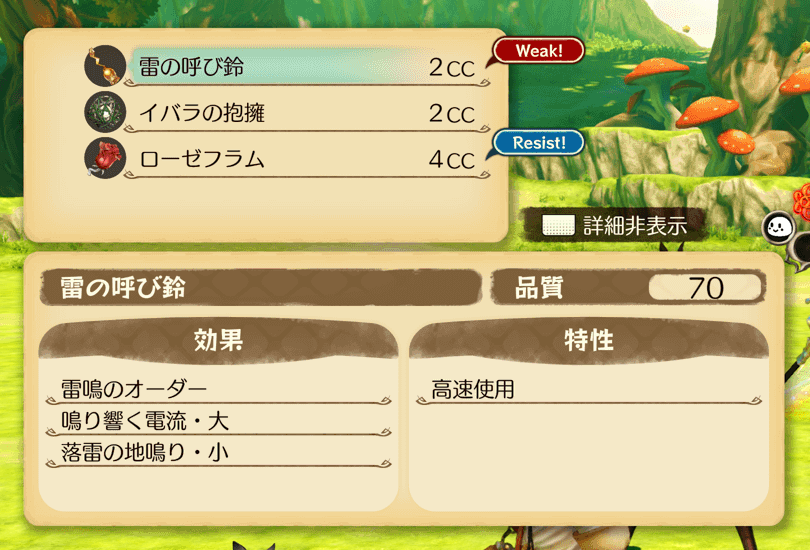 | 虫取り網でスイング | APを10獲得+ 魔物全体の素早さが低下した状態で戦闘開始 |
