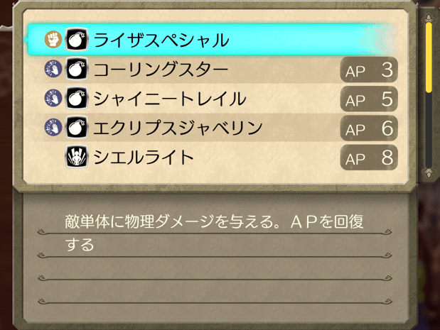 APを消費しない攻撃です。攻撃を当てるとAPがたまります。