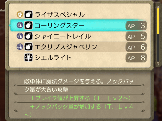| ハンマーでスイング | APを10獲得+ 魔物全体のブレイク値が低下した状態で戦闘開始 |