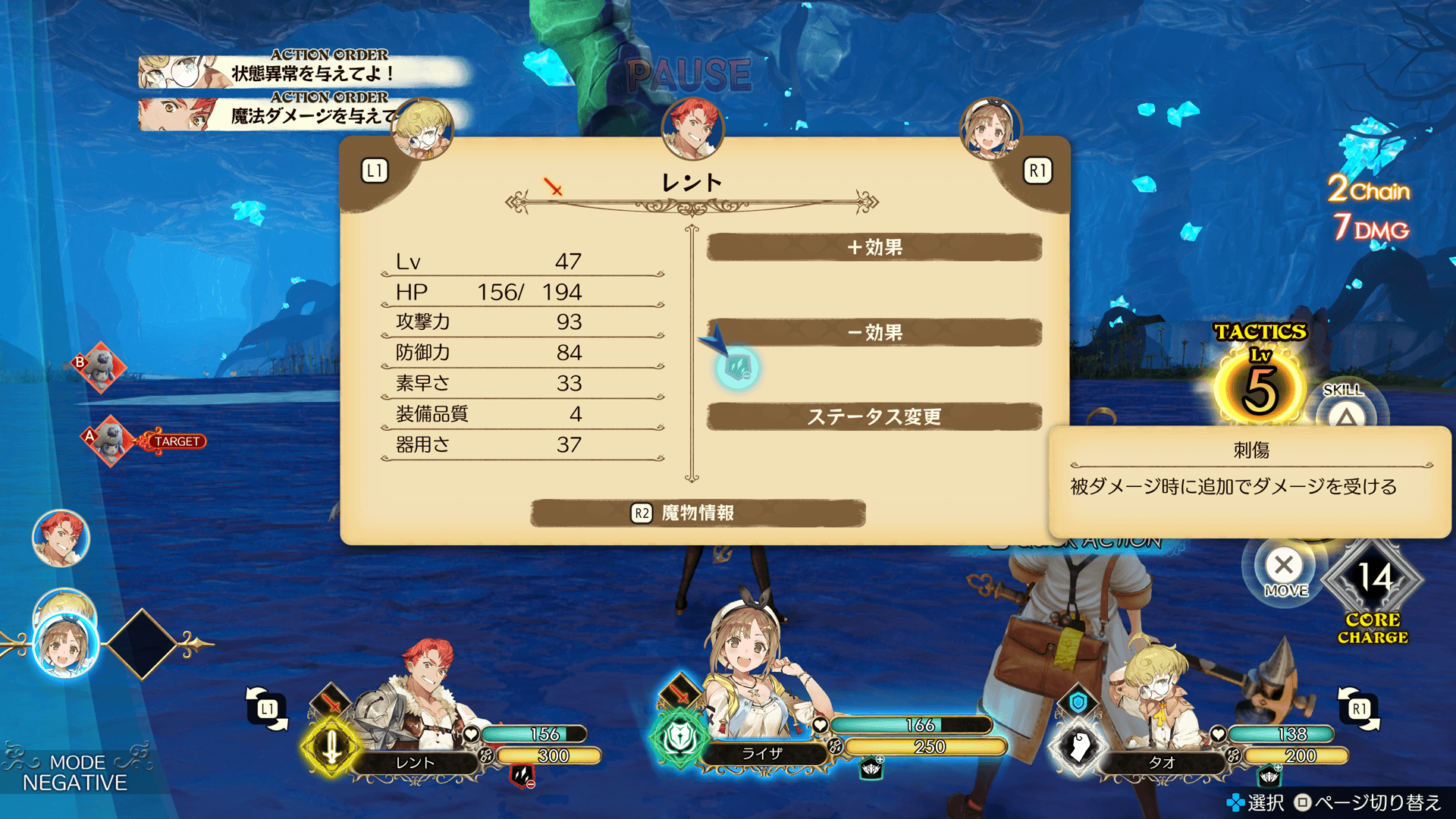 戦闘中いつでも「ネガティブモード」と「アグレッシブモード」を切り替えられます。