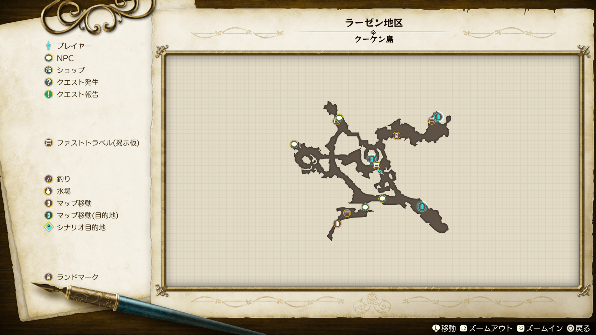 全体マップでは、現在いるエリアの全体図を確認できます。