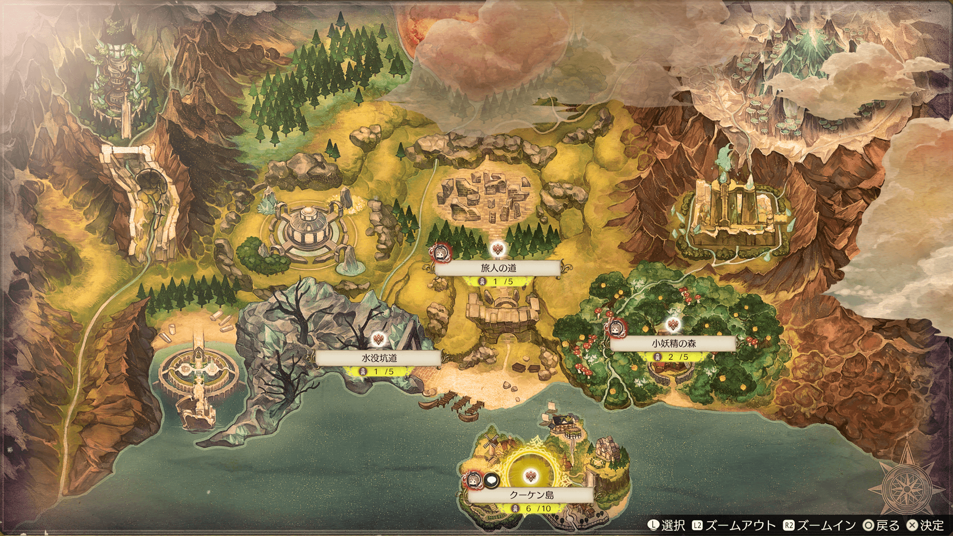 メモリーマップには、冒険したことのある場所の地図が表示されます。また、各エリアへのショートカット移動ができます。 ランドマークを全て見つけたフィールドには探検の記録をつけられます。探検の記録は、記録するキャラクターによって内容が変わります。