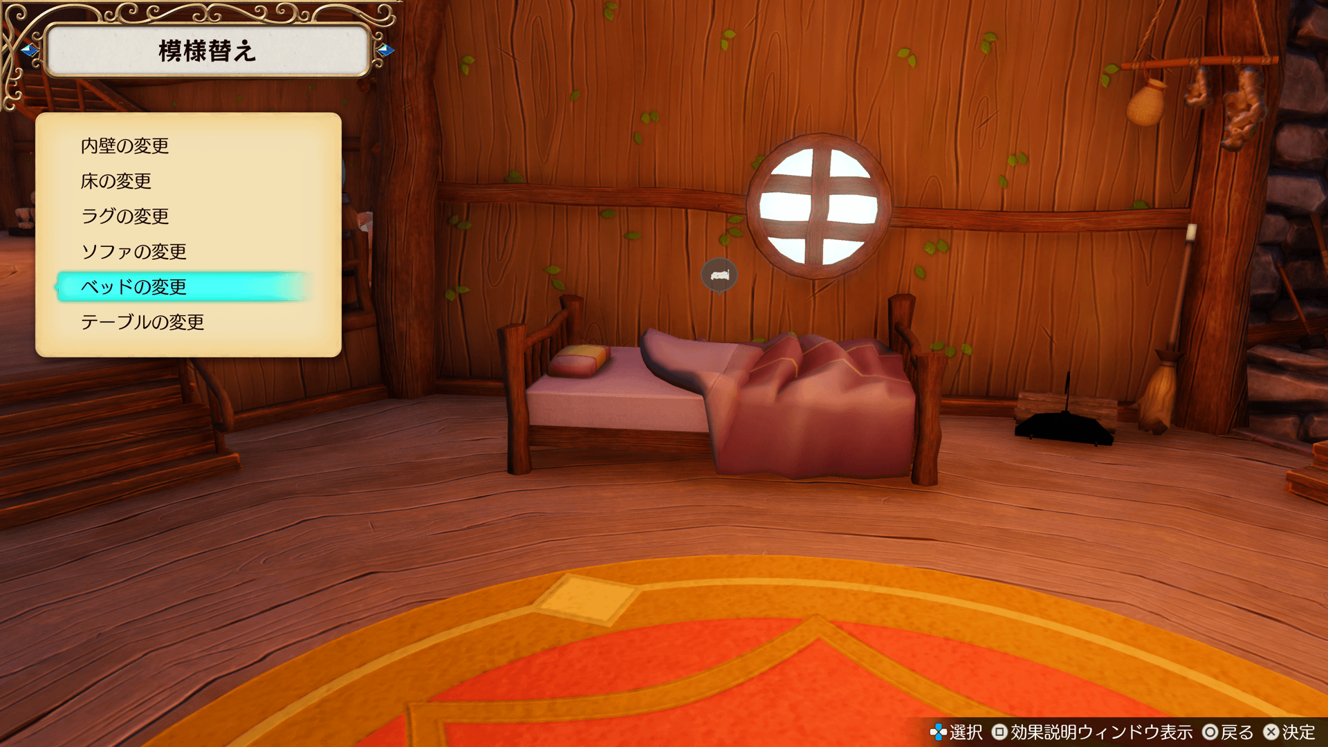 調合で特定のアイテムを入手すると、隠れ家の外観や内装を変更できるようになります。模様替えは、隠れ家内の「日記」(内装)、および隠れ家外の掲示板(外装)から行います。