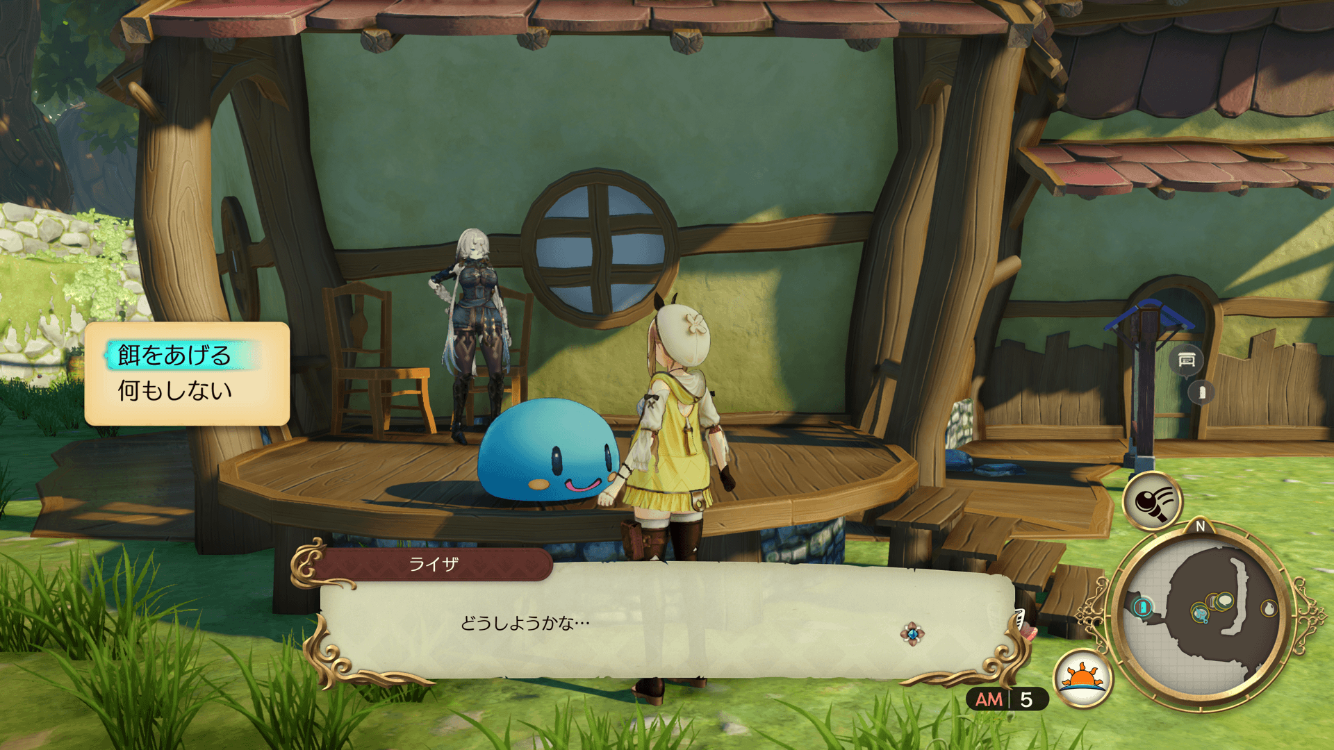 アトリエに住み着いたぷにに餌をあげると、旅に出ることがあります。旅から帰ってきたぷにに話しかけると、お土産をくれます。餌に応じて、ステータスが増減し、ぷにの姿が変わることがあります。