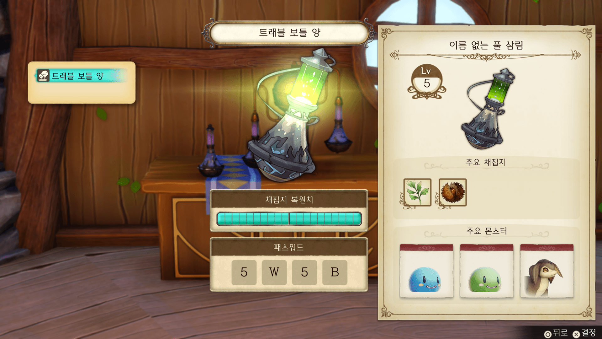 보틀을 모을 수록 높은 레벨의 채집지를 조합할 수 있습니다.