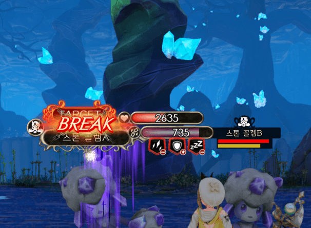 브레이크 상태가 되면, 일정시간 동안 받는 대미지가 증가하고 행동순서가 돌아오는 것이 늦어집니다.