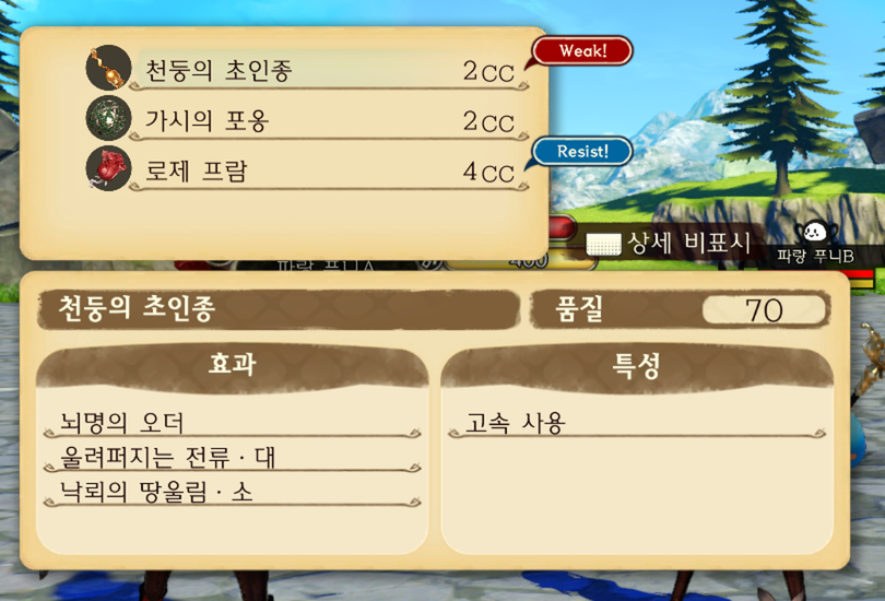 적의 약점속성을 찌르면 더욱 큰 대미지를 줄 수 있습니다.
