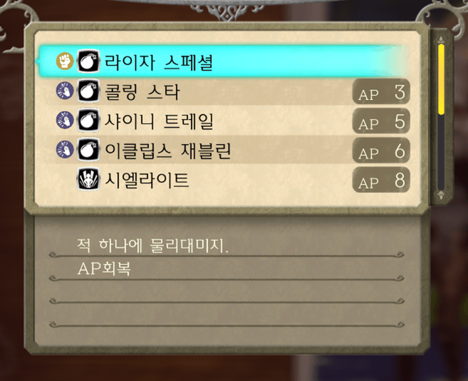 AP를 소비하지 않는 공격입니다. 공격을 맞추면 AP가 쌓입니다.
