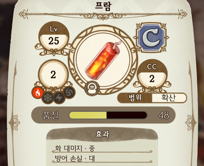| 프람 로드를 스윙 | AP를 10 획득+ 모든 몬스터에게 대미지를 입힌 상태로 전투 개시 |