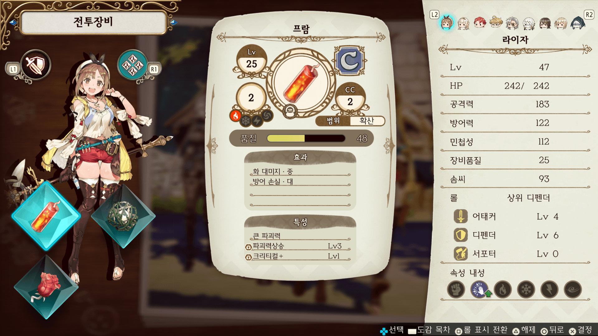 전투・탐색에서는 캐릭터가 장비한 코어 아이템만 사용할 수 있습니다.