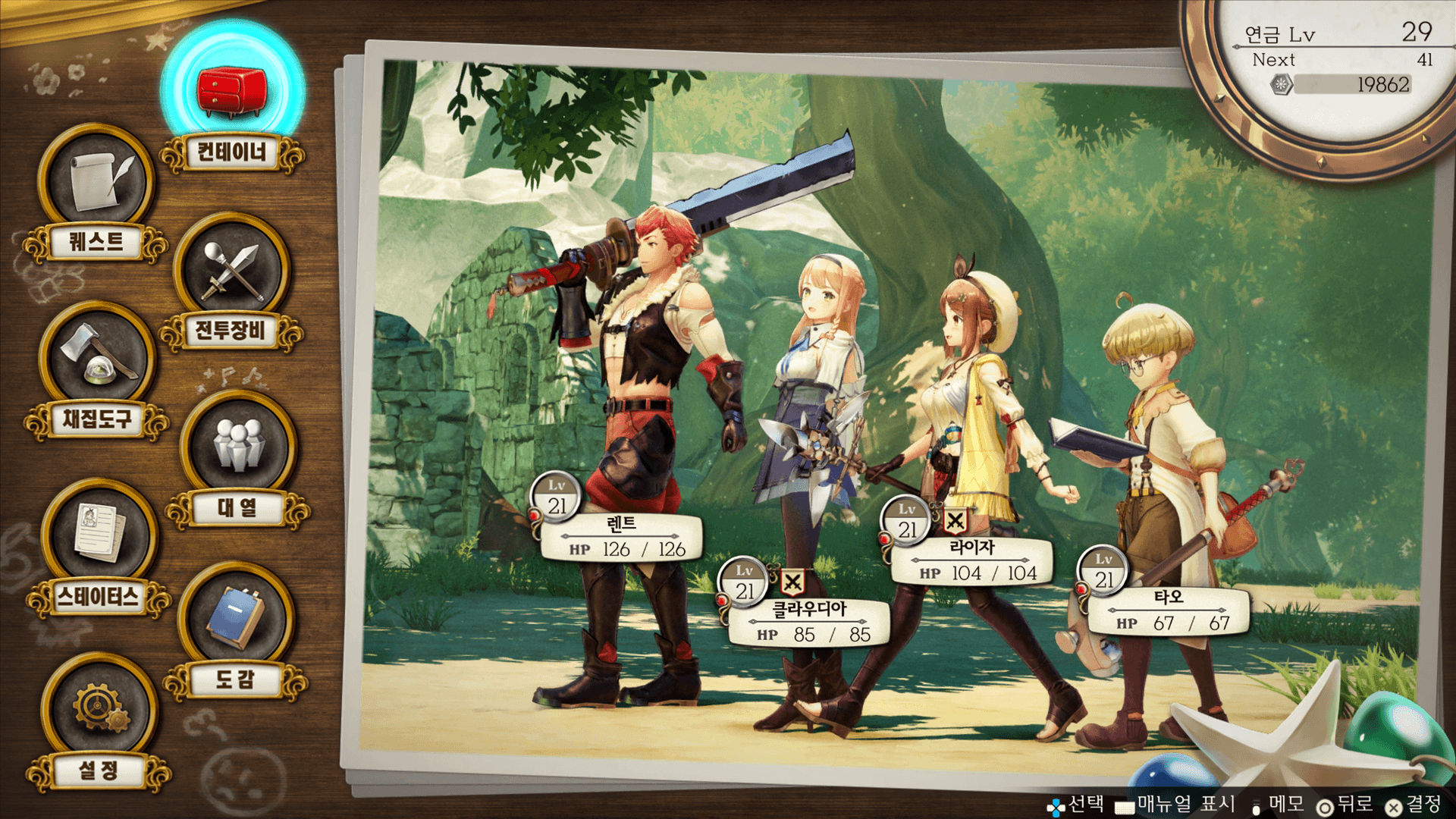 채집 및 전투로 입수한 아이템을 확인합니다. 소지 가능한 개수에 상한이 있습니다.