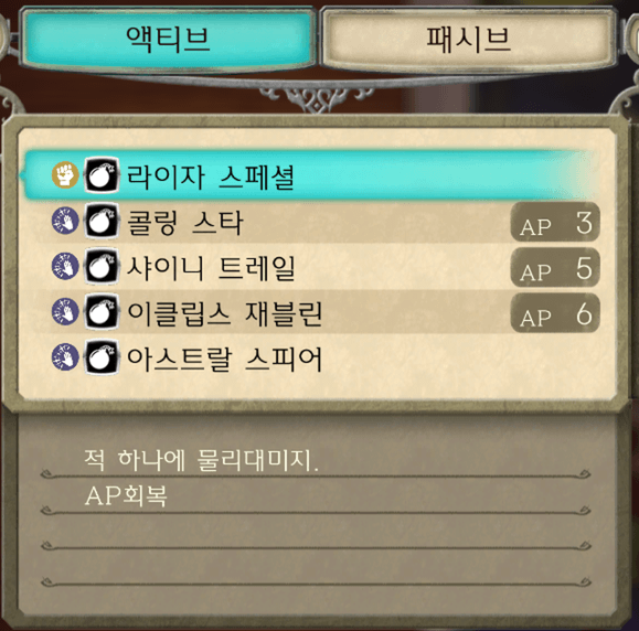 AP표기가 있는 스킬을 동일 수치의 AP를 소비하여 발동합니다.