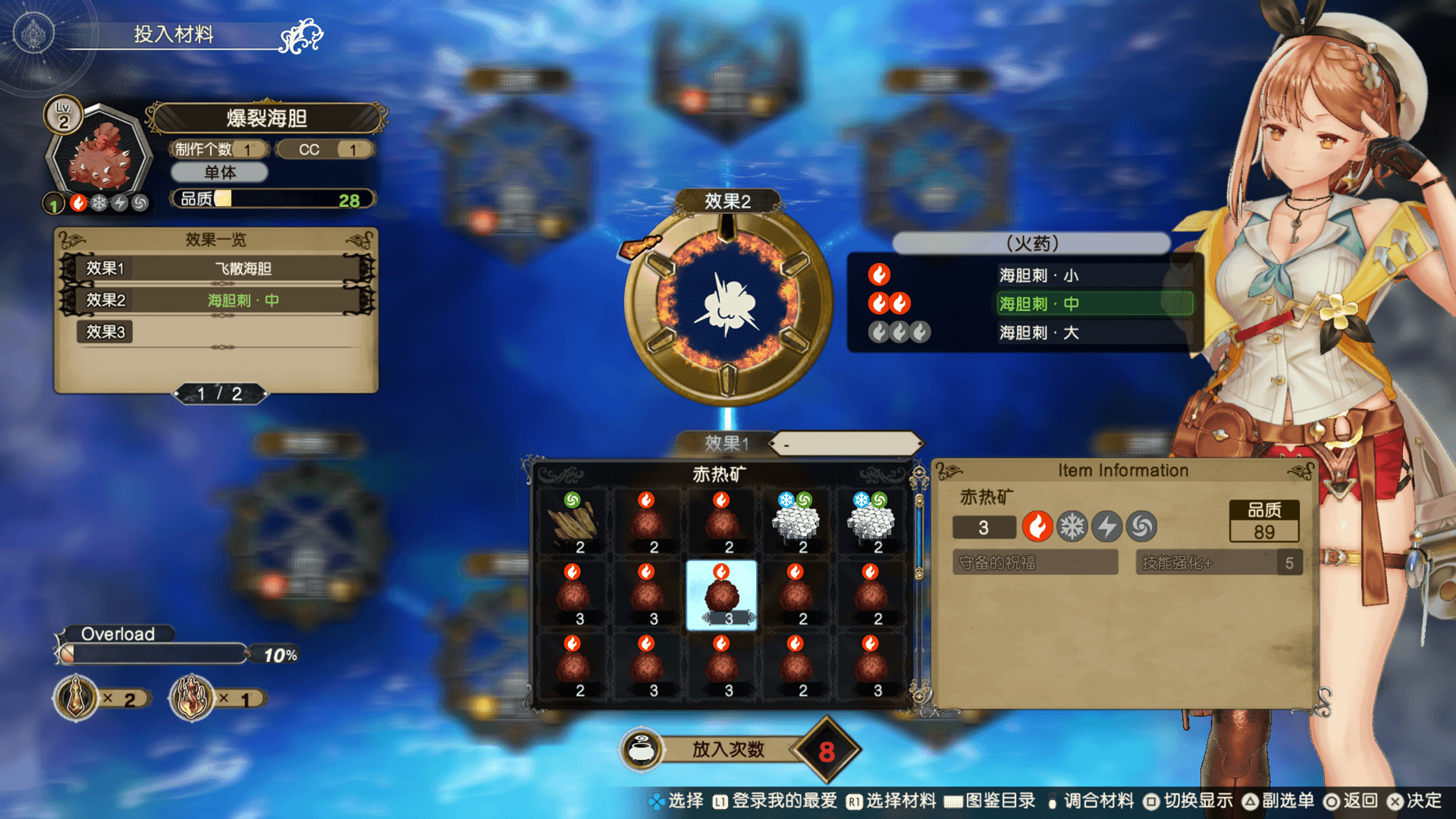 使用炼金工房的炼金釜即可进行调合。调合时需要道具的配方。