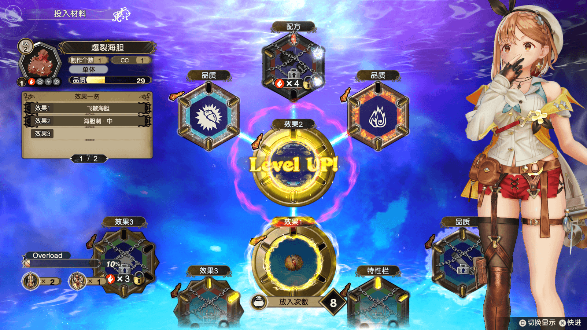 一旦让标记着「配方」的特殊材料环升级,就会变化为完全不同的配方。