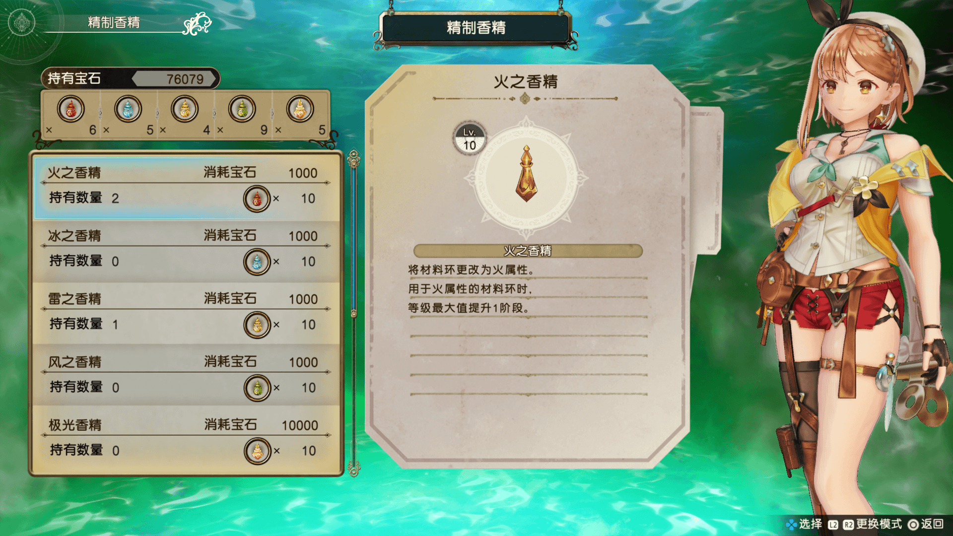 若使用和材料环不同属性的香精,便会改变材料环的属性。若使用相同属性的香精,则会提升材料环的效果上限。