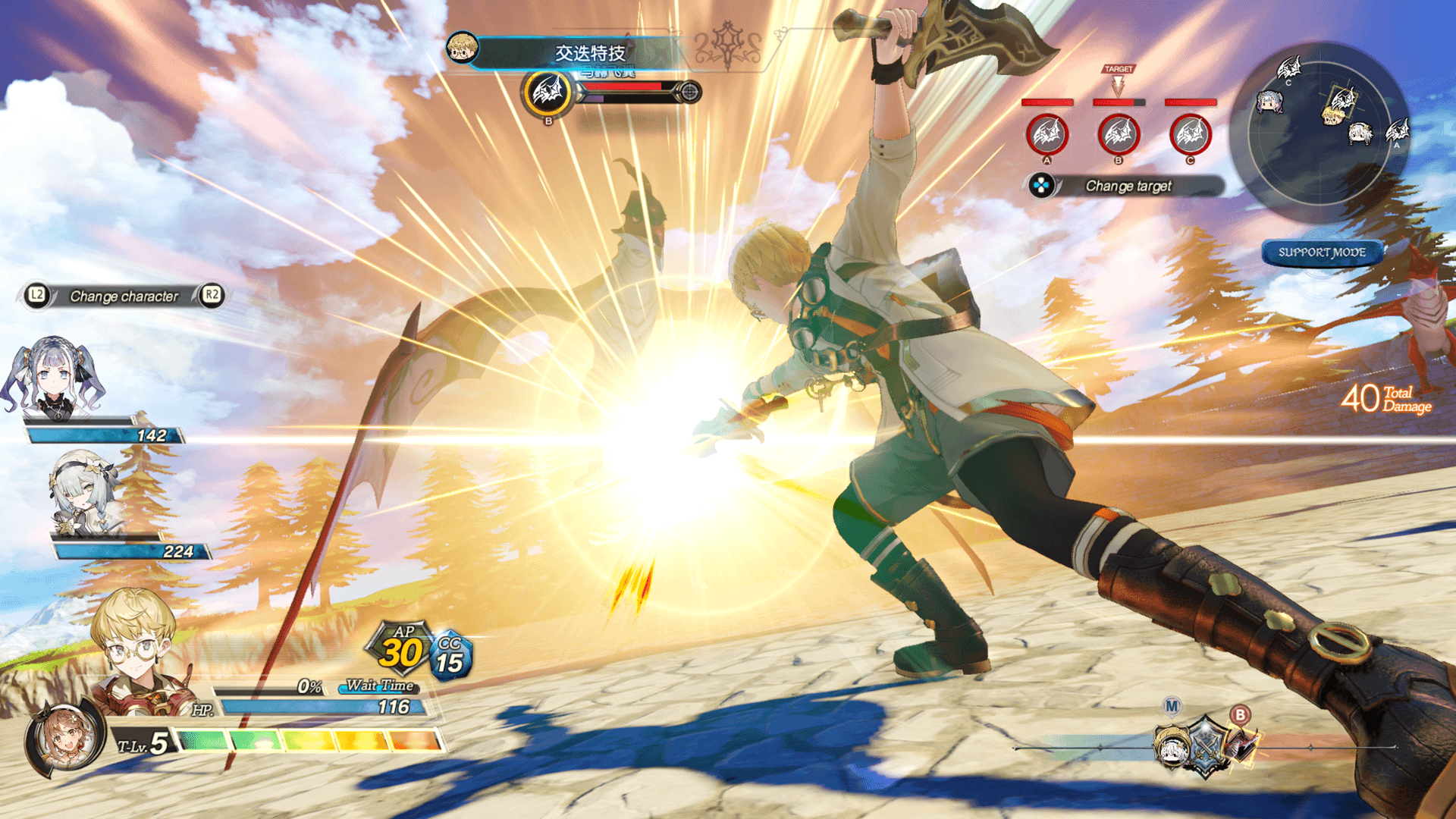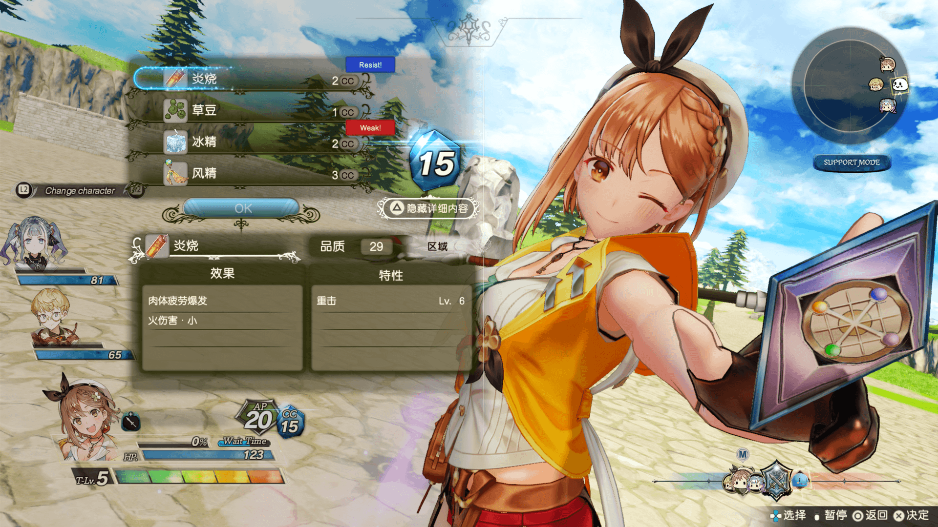 战斗中随时都可切换为「支援模式」或是「积极模式」。