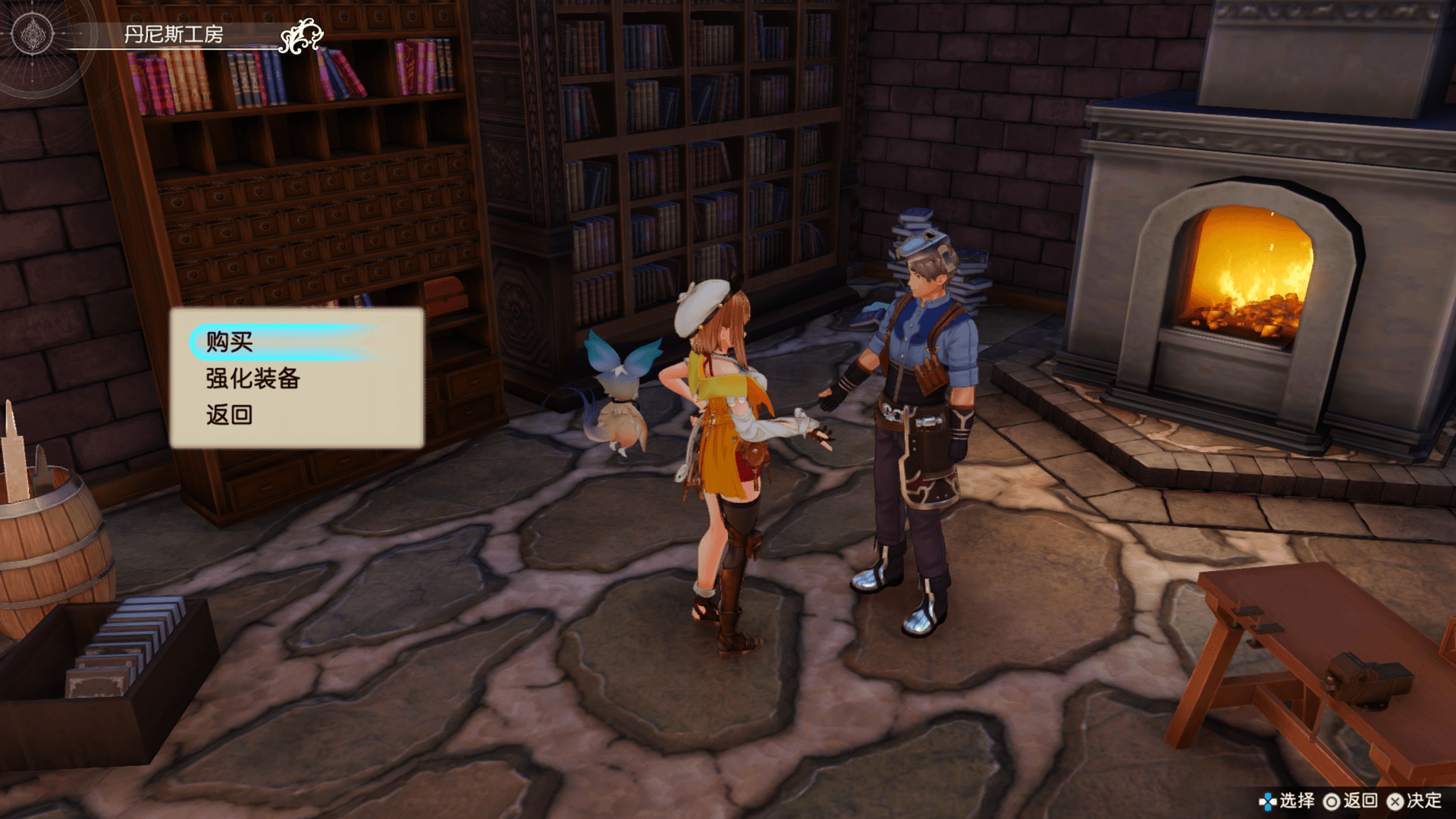 在丹尼斯的工房可强化装备。使用不同的材料,强化的能力也会有所不同。此外,还可继承作为材料的道具具备的特性。根据作为材料的道具不同,还有可能赋予装备特殊效果。每个装备都仅有一次强化机会。