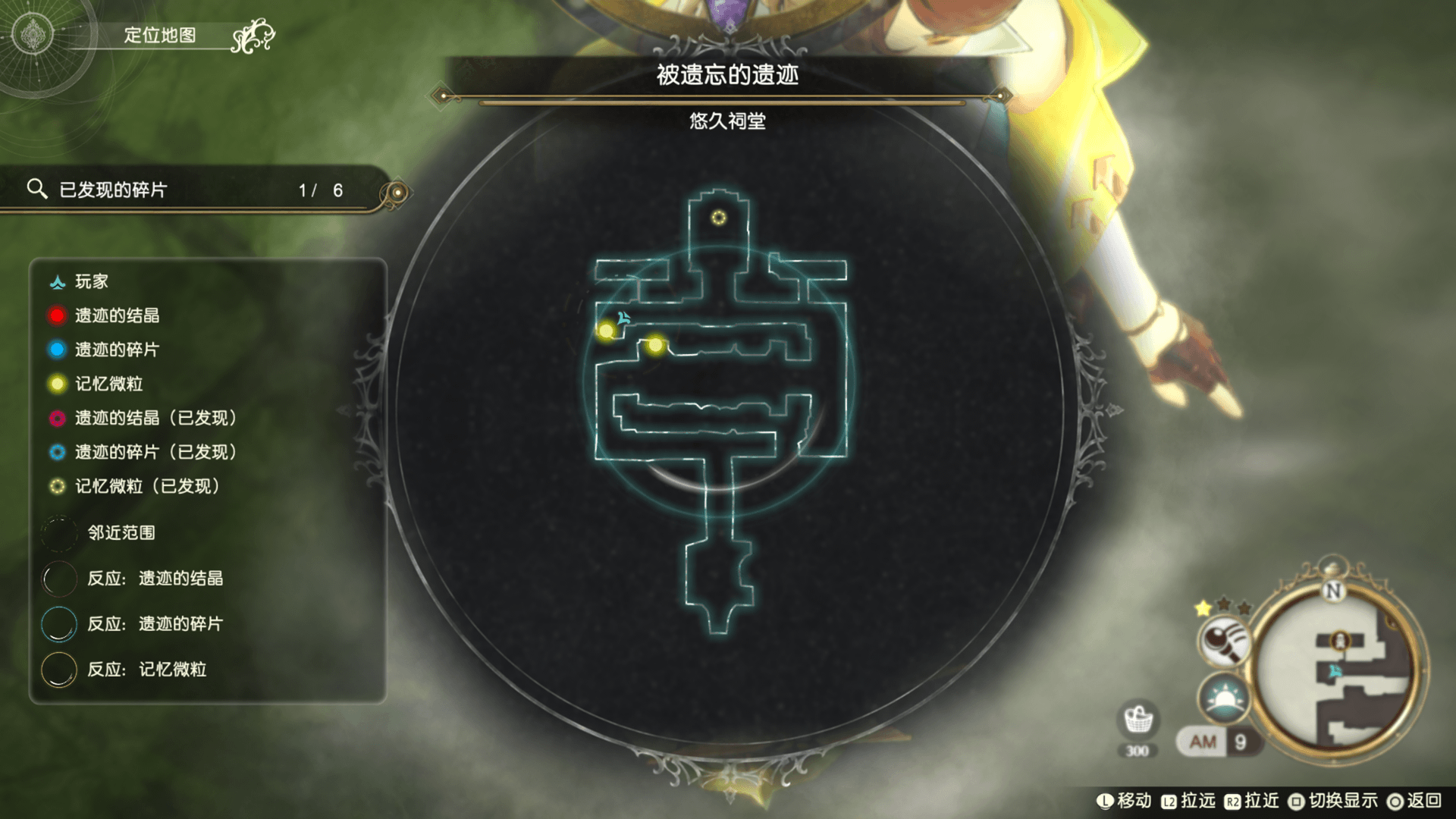 在追忆的指南针活化时打开全体地图,就能开启定位地图。定位地图会显示附近碎片的位置,以及过去已获得的碎片位置。