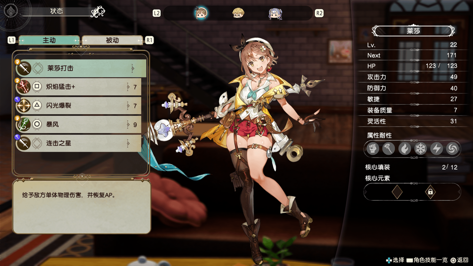 可确认能力值。能力值也可从主选单>「装备」、「核心道具」中确认。