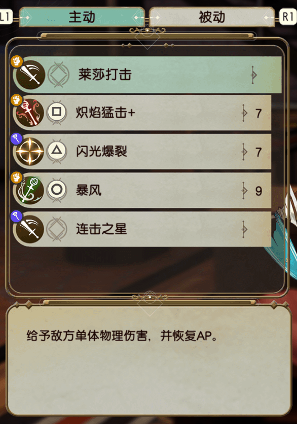 从主选单>「阵型与能力」中可确认角色的能力值与技能。