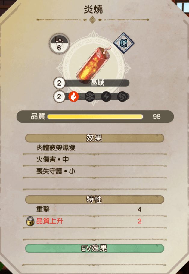 | 4屬性強化 | 強化火屬性、水屬性、雷屬性、風屬性攻擊的傷害。 |