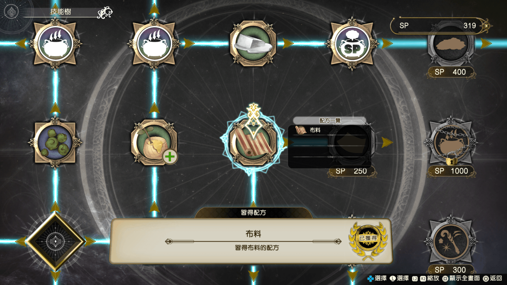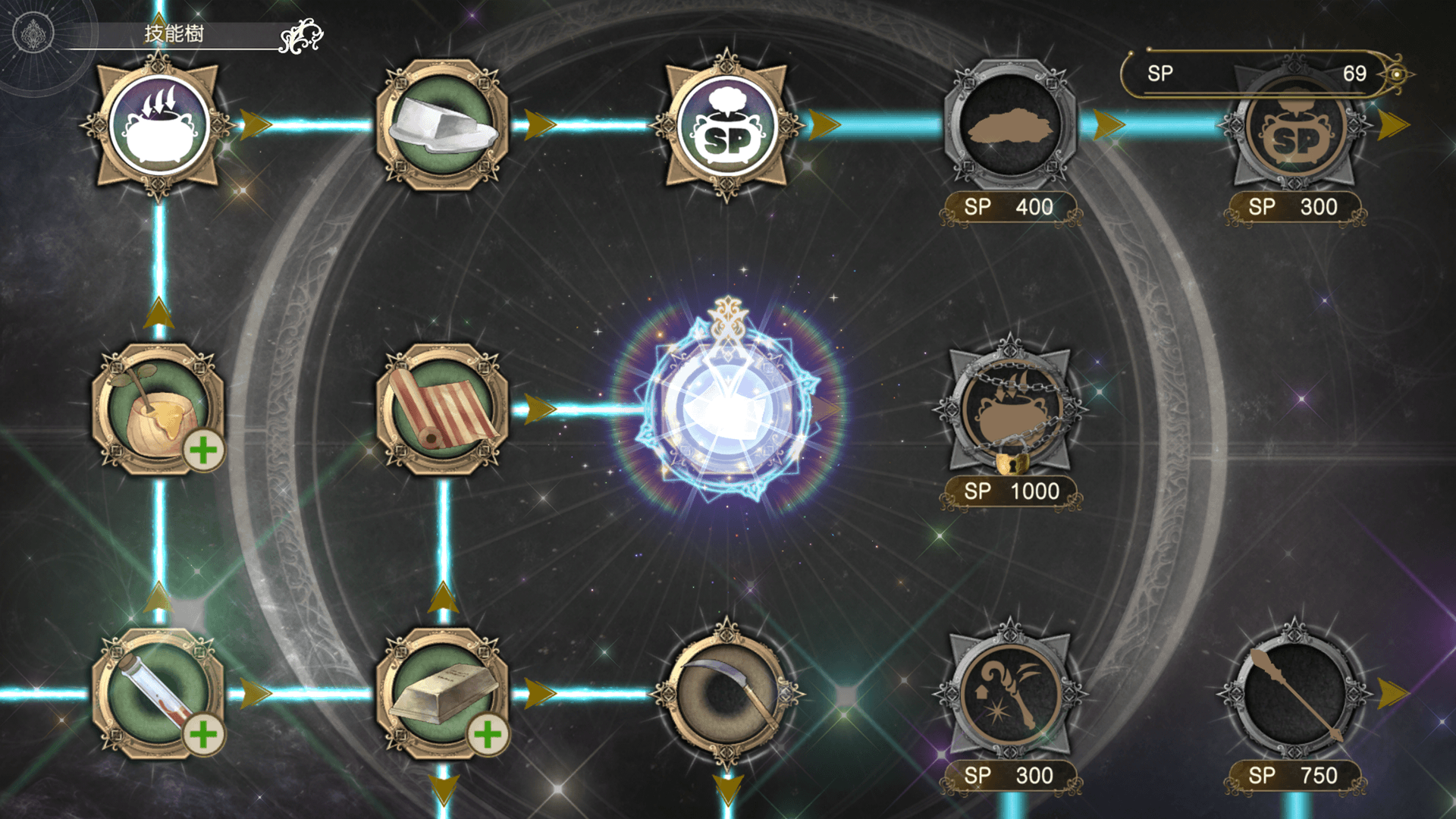 在技能樹可消耗SP,習得配方或對鍊金術士有用的技能等。