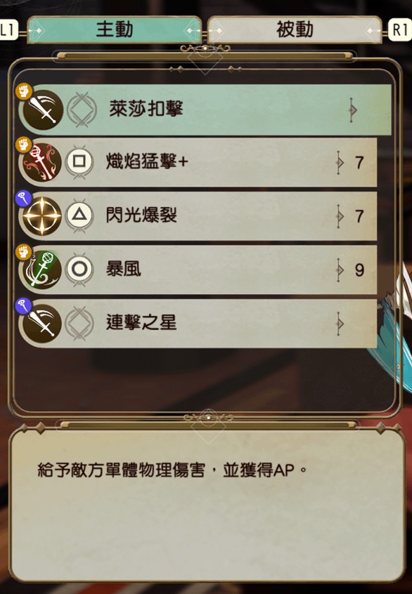 從主選單>「隊形與能力」可以確認角色的能力值與技能。