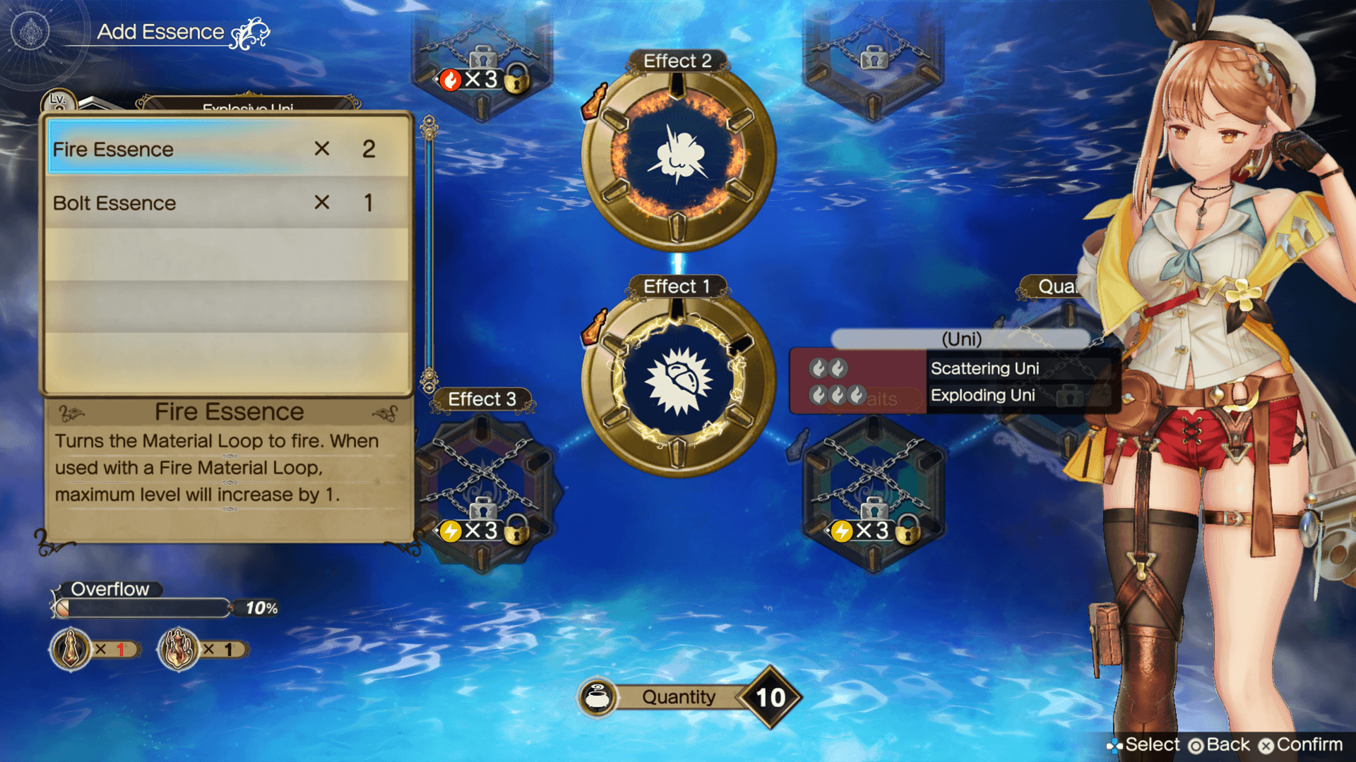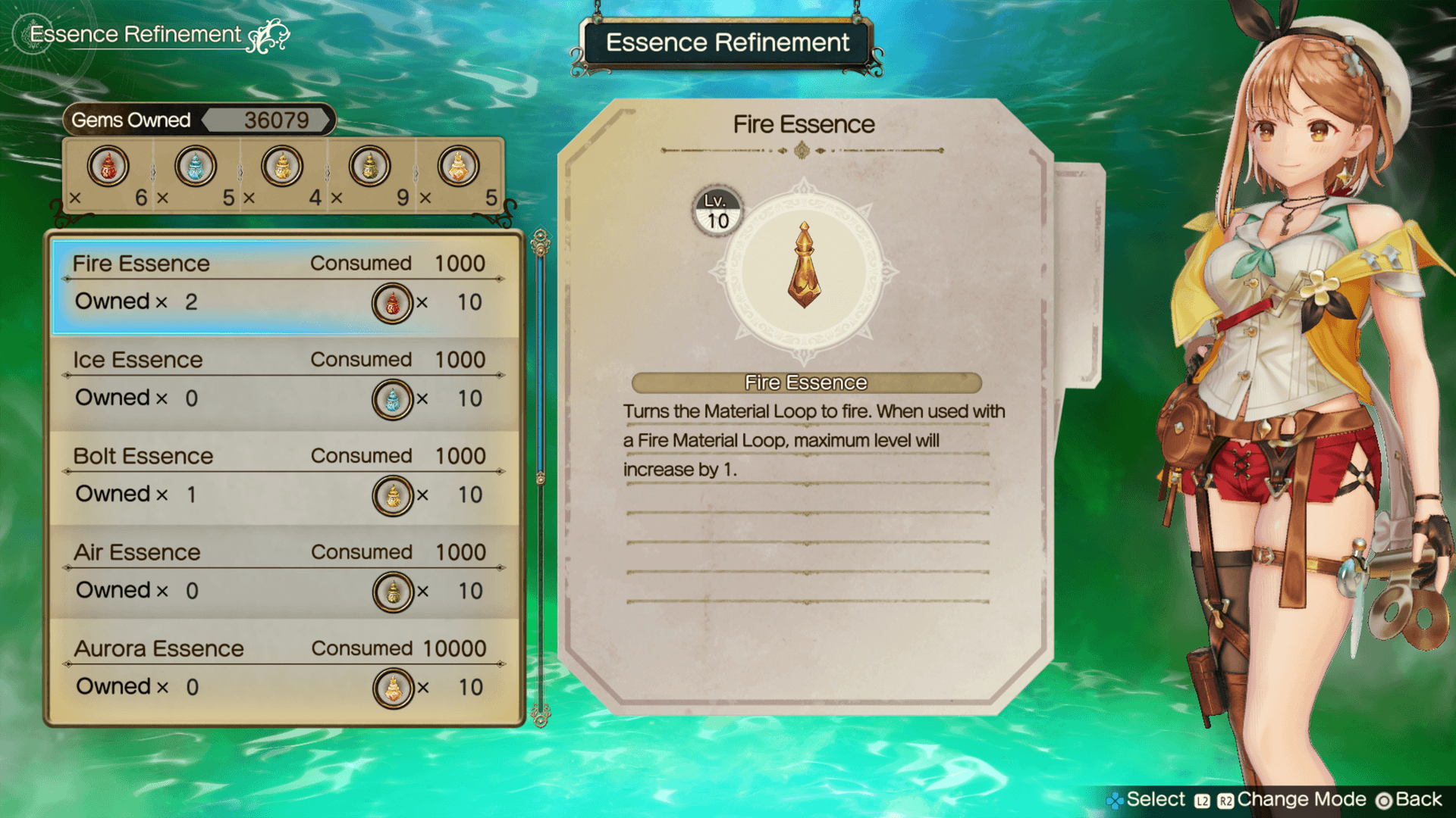 Essences are special items used during synthesis to change the element or boost effects of Material Loops.