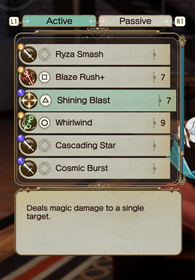 | Restraint | Prohibits skill combo attacks. When used on enemies, it will lengthen the amount of time until they unleash a powerful attack. At high levels, decrease Air resistance. |