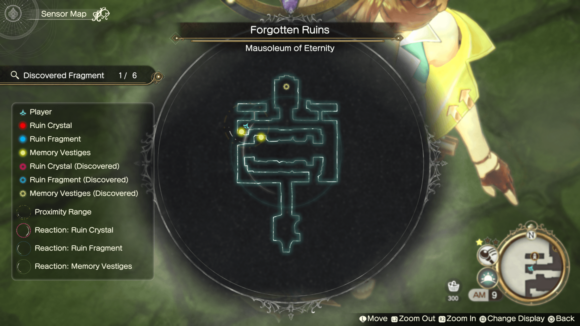 When the Compass of Recollection is activated, you will be able to discover Ruin Fragments, Ruin Crystals, and Memory Vestiges. You can use the Sensor Map and the compass to efficiently track down these bits of ancient history.