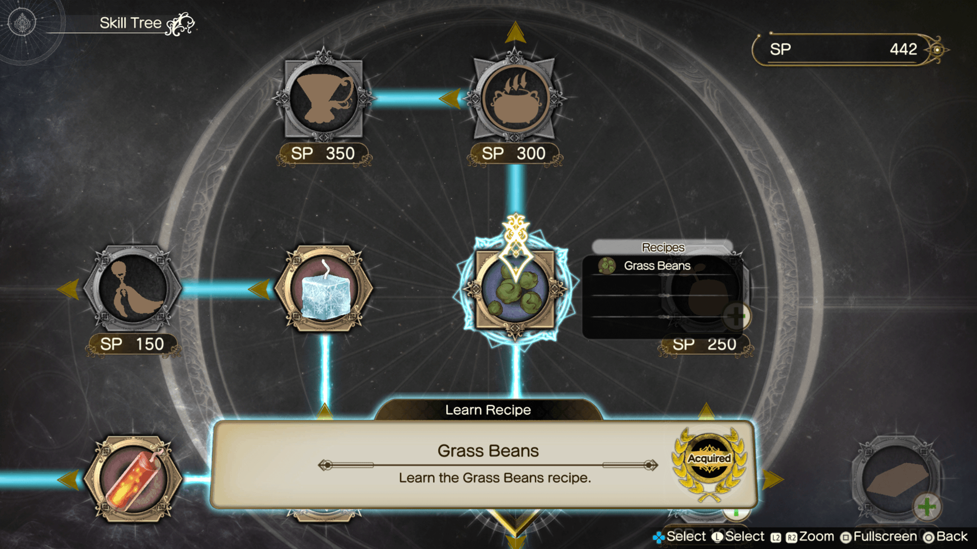 Consume SP in Skill Tree to learn recipes or other skills useful to any good alchemist.