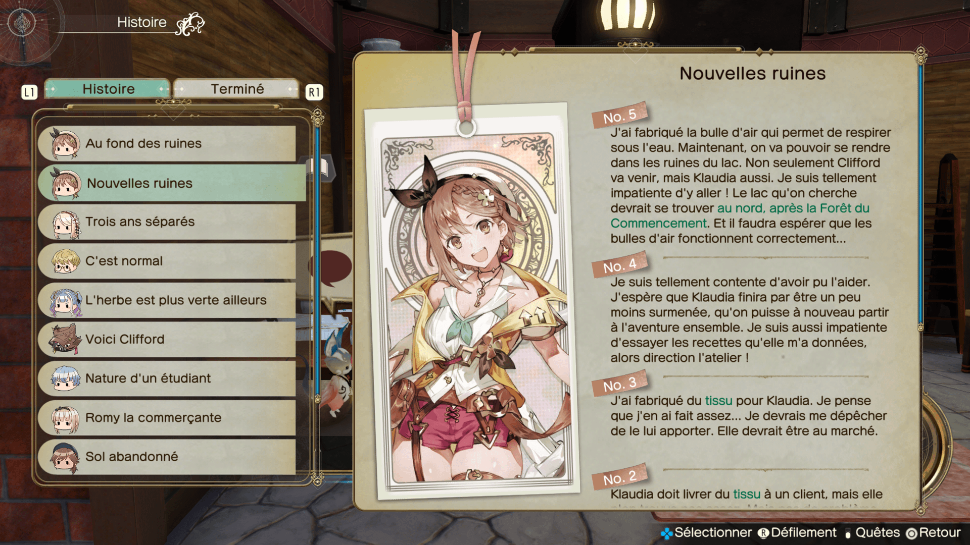 Vous pouvez consulter le journal de l'histoire à tout moment pour découvrir ce que vous devez faire. Si vous ne savez pas où aller, consultez le journal !