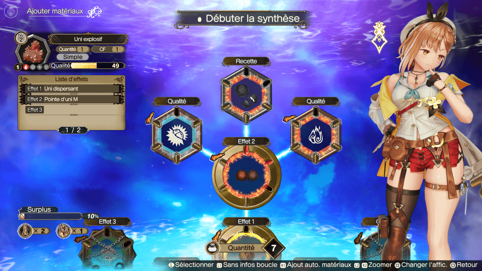 La synthèse consiste à combiner différents matériaux pour créer un nouvel objet, pouvant servir pour l'exploration, la collecte, les combats et d'autres activités.